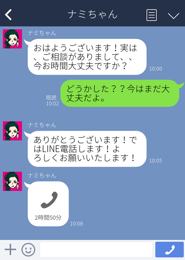 そんな朝、同僚のナミちゃんからLINEメッセージが。。